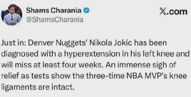膝盖受伤确诊!约基奇测试结果公布!担心错过常规赛MVP
